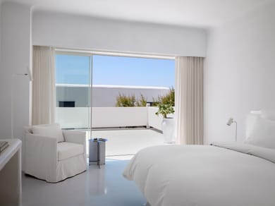 Cycladic-style bungalows clustered in small groups throughout the gardens. Cool and stylish with romantic touches.